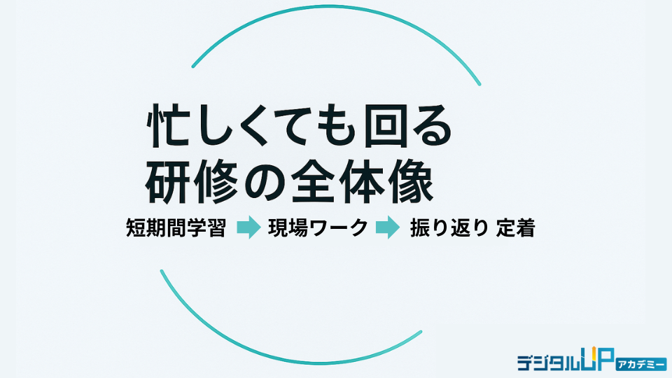 ・短時間の動画(マイクロラーニング)と現場ワークを組み合わせると、忙しくても回る。